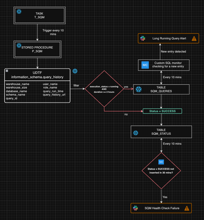 For Snowguard, we setup Monte Carlo custom SQL monitors on the SQM_RESULTS